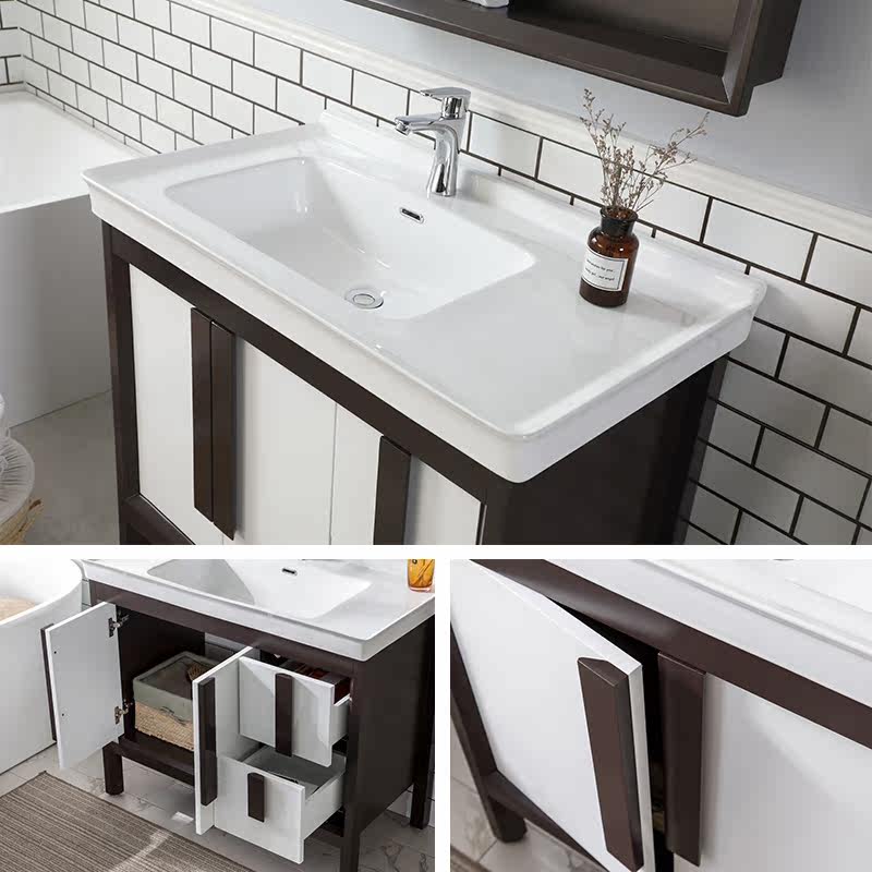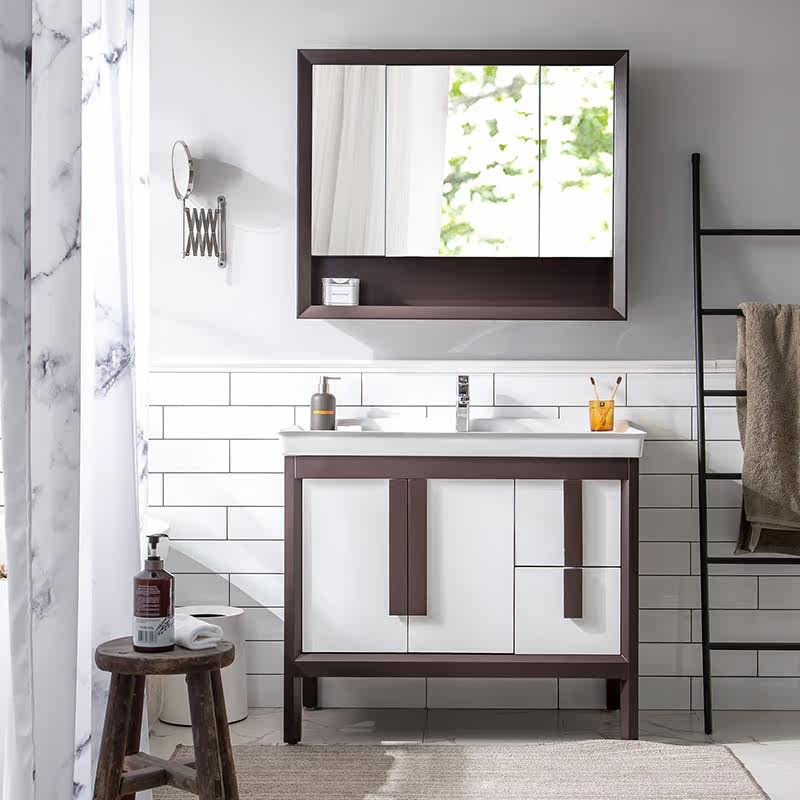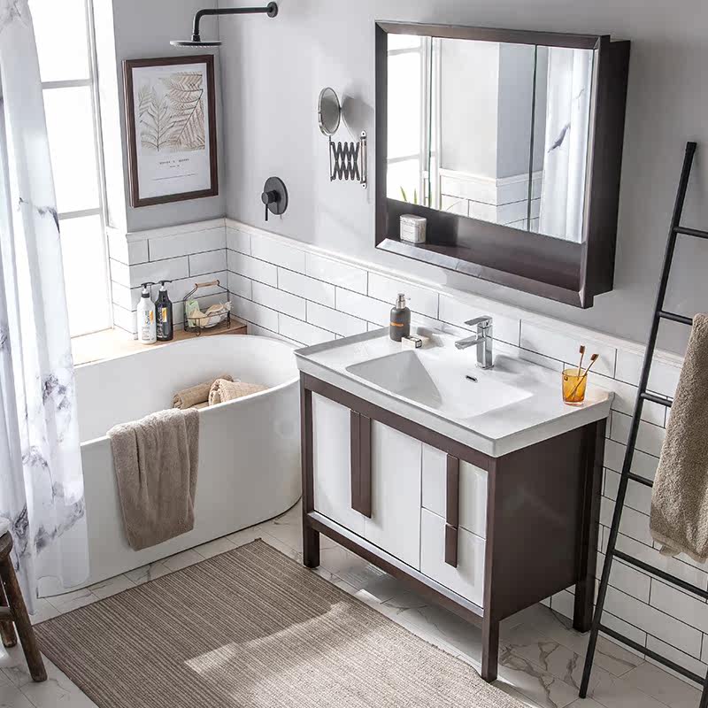 Xiao Meng New Chinese style simple modern bathroom cabinet combination Solid wood hand wash basin cabinet Floor-to-ceiling sink
