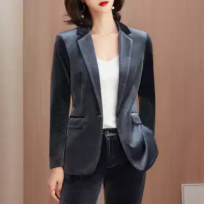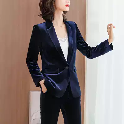Blue gold velvet suit suit women 2021 new fashion slim high end temperament work clothes small coat suit