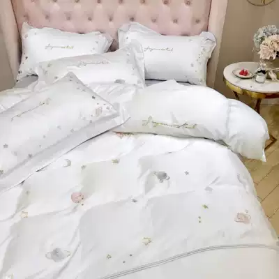 Hipster Simple 80s Lan Jing Tencel Bedding Planet Embroidery quilt cover Fairy White Summer Four Piece Set 1 8
