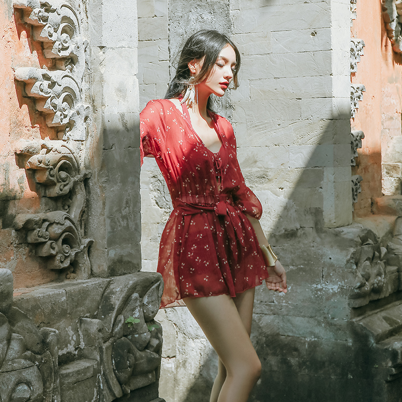 2021 new swimsuit women's summer two-piece three sets of South Korea gather for a slim and sexy bikini holiday swimsuit