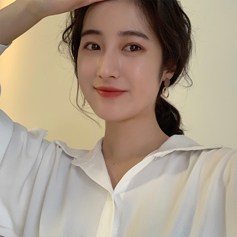 Korean Chic niche design sense earrings femininity retro matt gold geometric simple cold wind ear needle R577