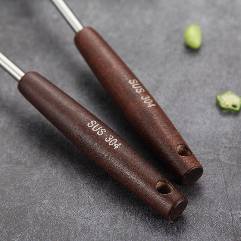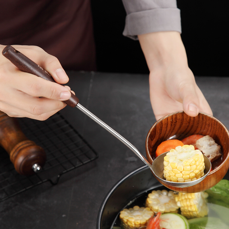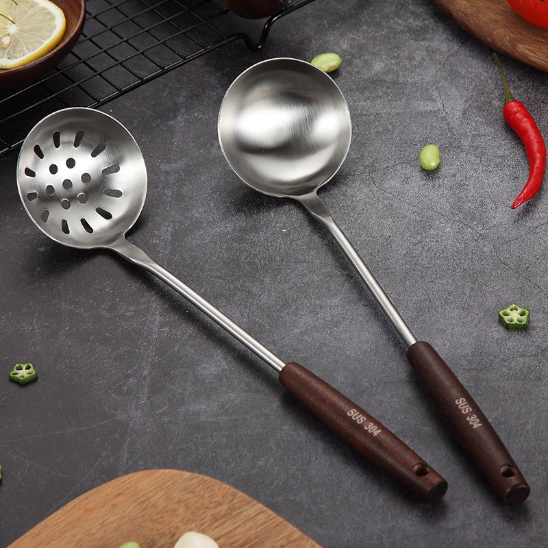 304 stainless steel wooden handle spoon Colander household kitchenware anti-hot thick handle porridge Spoon mixed noodle spoon Kitchen Supplies