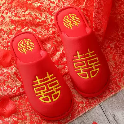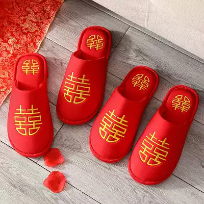 Wedding four seasons slippers Wedding happy word red couple couple indoor non-slip soft bottom wedding baotou slippers