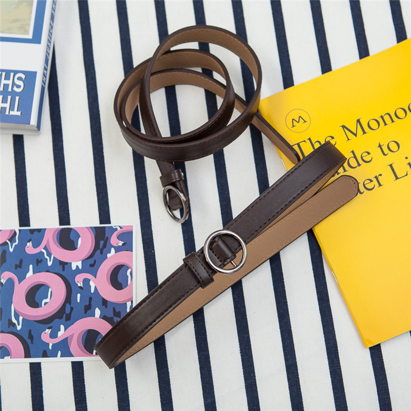 Round buckle black non-porous women's belt personality simple and versatile Korean retro fashion fine decoration jeans belt