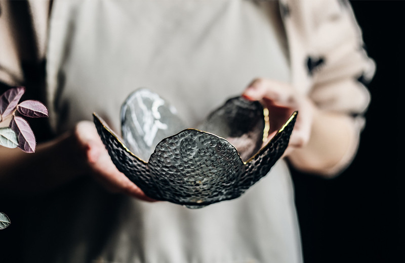 Clearance) fascination) soot tracing gold transparent cherry blossom bowl tracing gold household glass bowl fruit bowl salad bowl