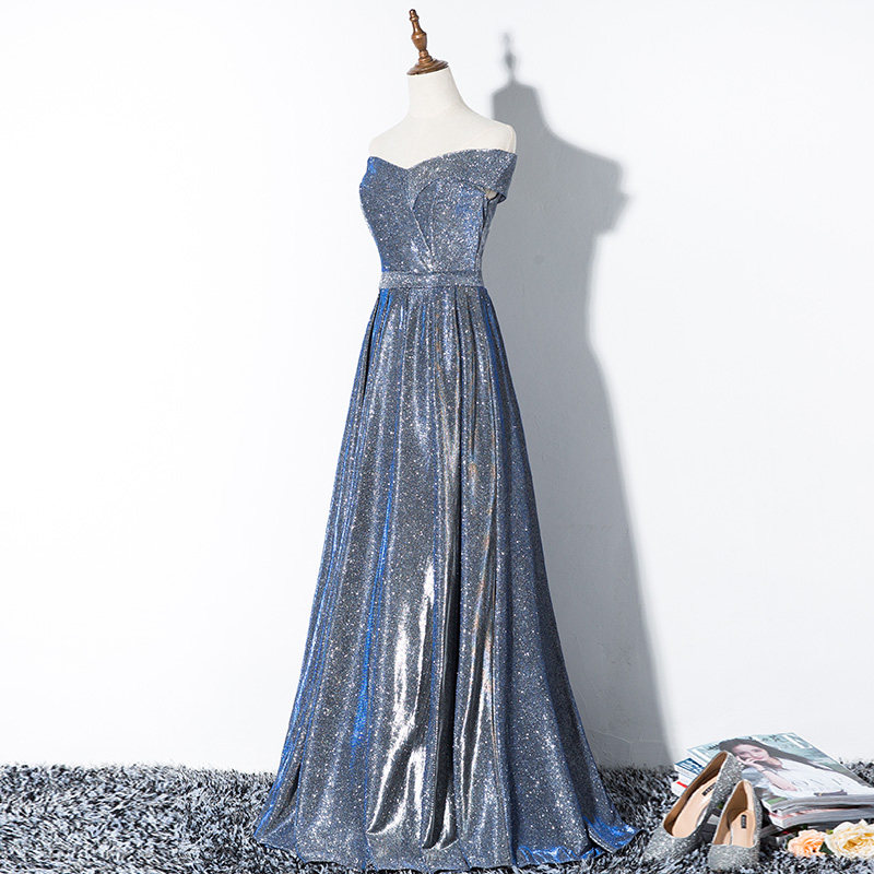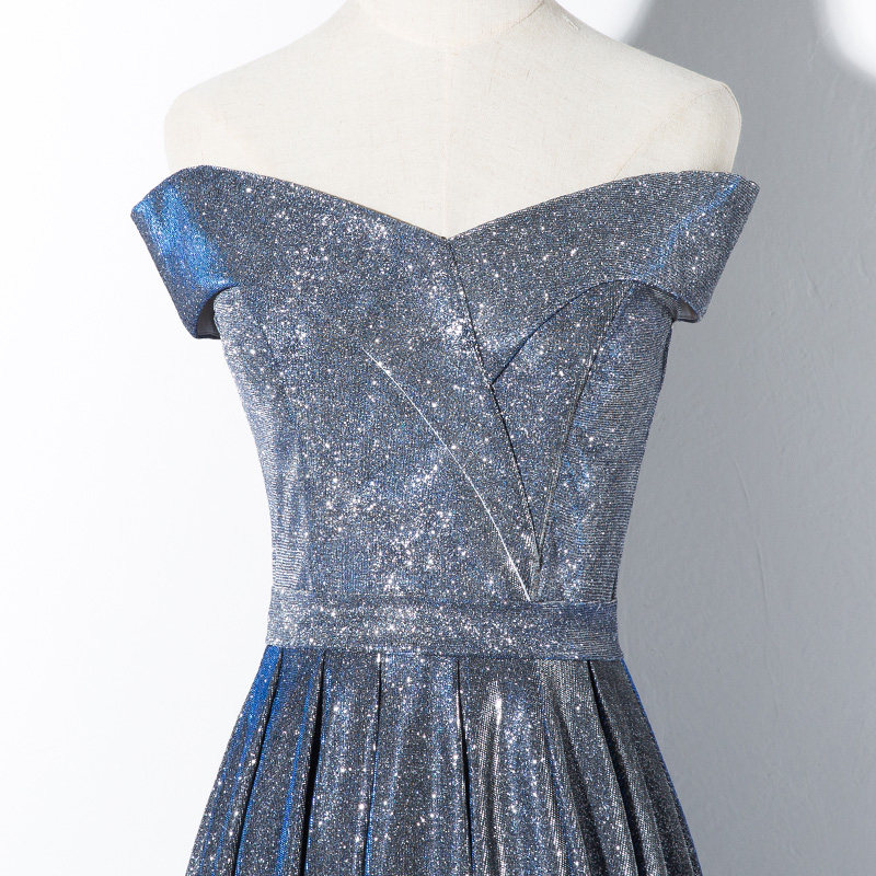Evening dress Women's 2022 new Lined Shoulders Grey Blue Student Art's annual event Performance party dress Long dress