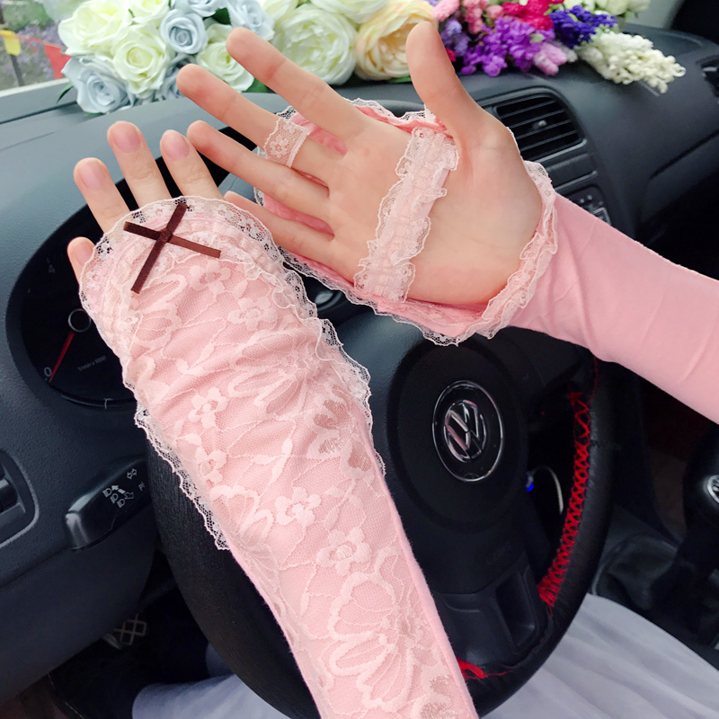 Sunscreen arm sleeve sleeves women summer gloves long thin sleeves sleeves lace anti UV ice silk Driving bike fashion