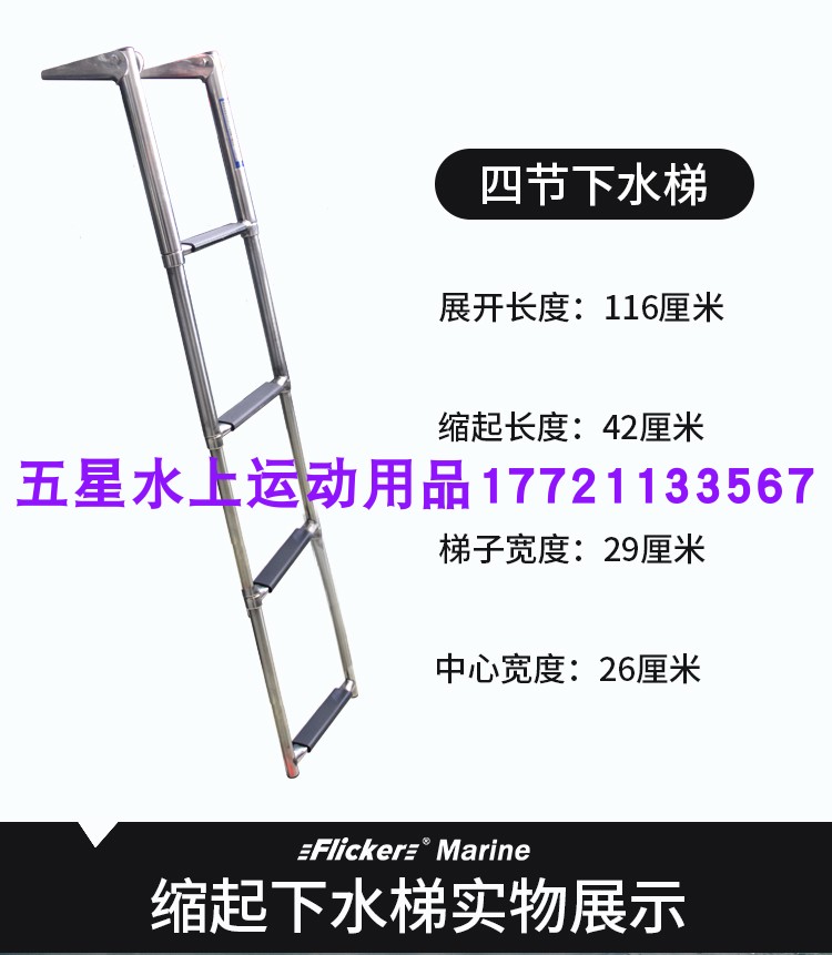 Flicker yacht speedboat Luya boat marine stainless steel aluminum alloy launching telescopic folding boat ladder