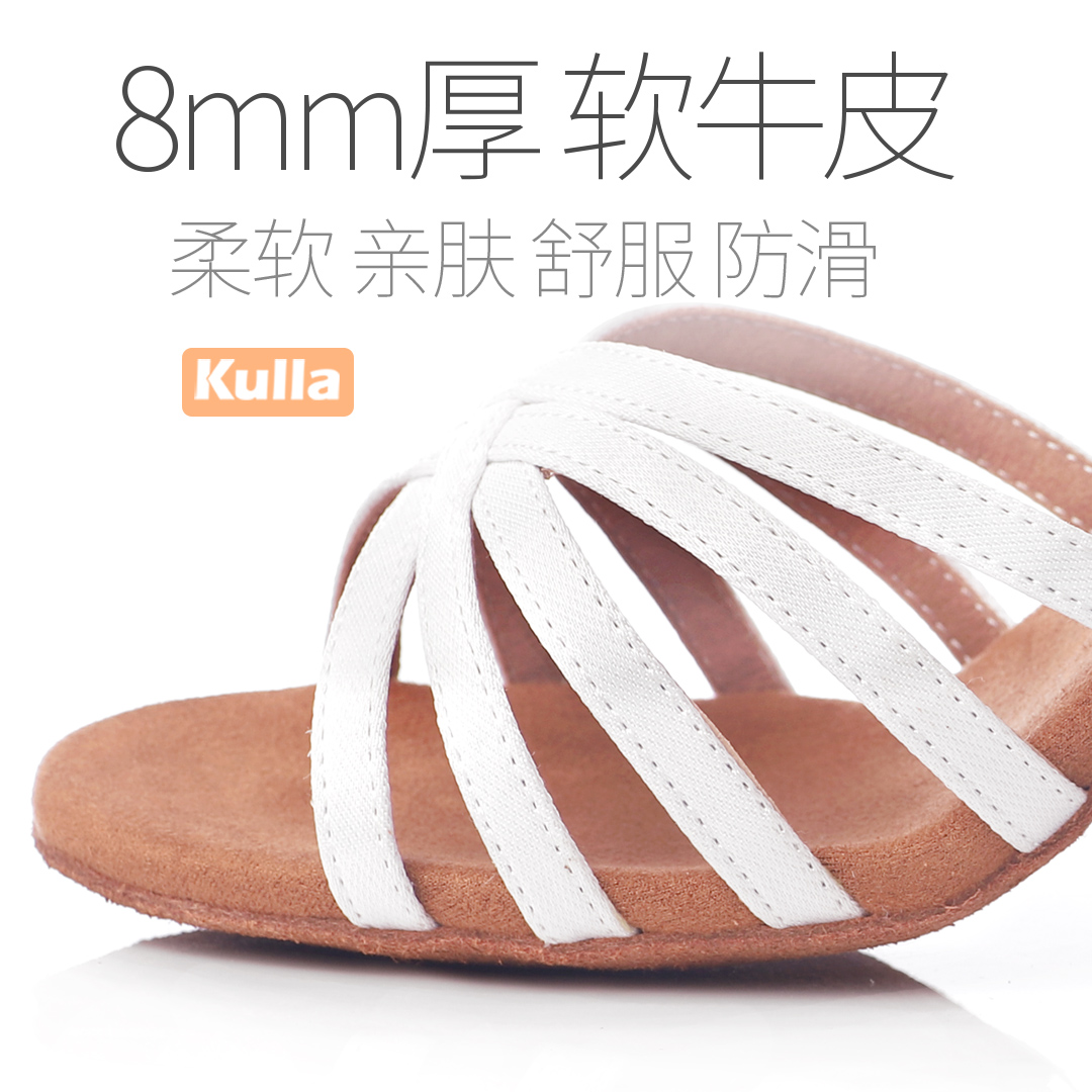 White Latin dance shoes female adults with high heel professional dance Soft bottom beginners Square Ballroom Practice Dance Shoes