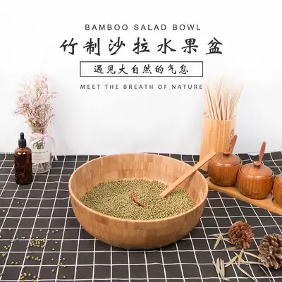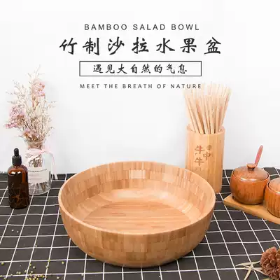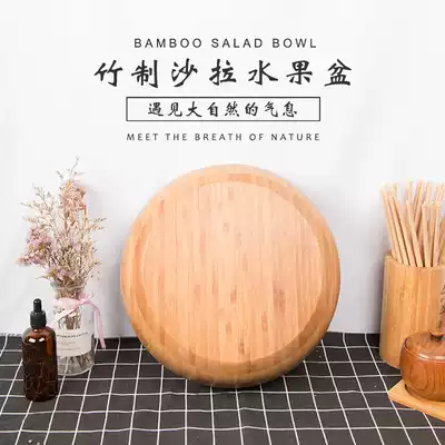 Bamboo round salad bowl creative simple household tableware Western restaurant fruit salad plate fruit bowl