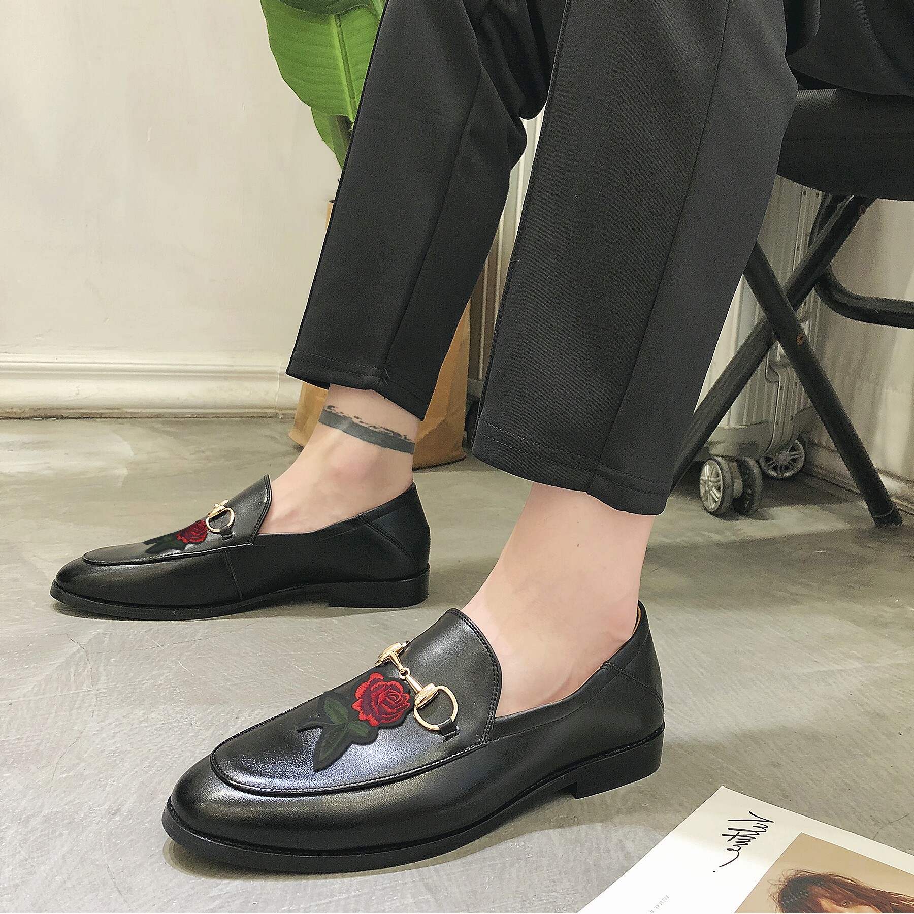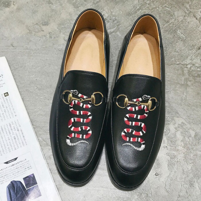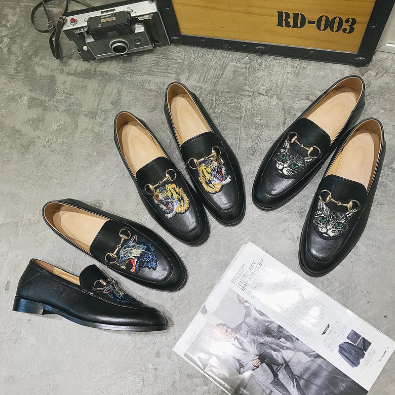 Tide Men's Rank Buckle Leather Shoes Summer Pointy Lefu Embroidery Set Foot Bean Bean Shoes A foot pedal Inlan hair stylist Leather Shoes