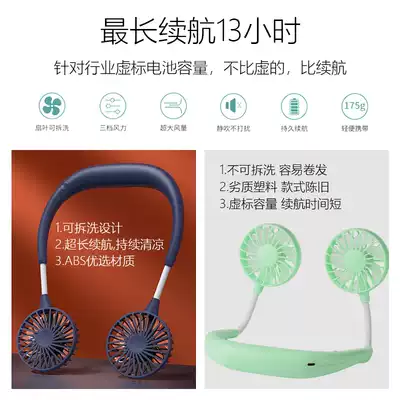 Hang neck fan mini portable portable usb charging lazy fan hanging neck neck student dormitory office desktop children silent kitchen big wind electric fan summer