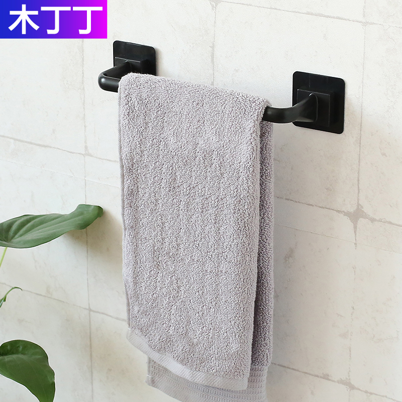 2 towel frame wall hanging out of punched cosmetic room with toilet towel with towel bar