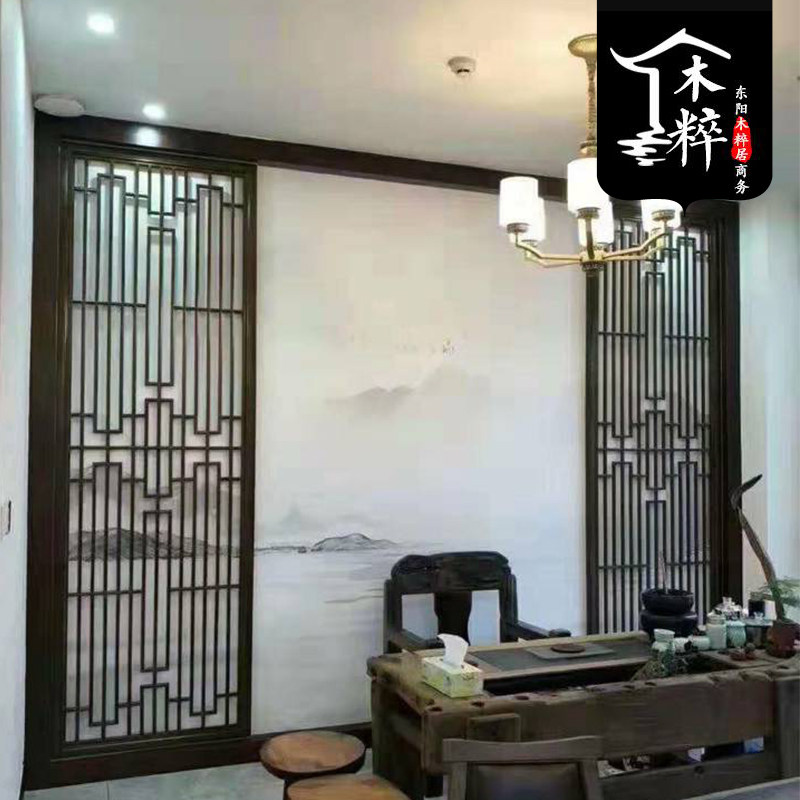 Dongyang wood carving Chinese decoration antique living room background grille doors and windows solid wood hollow lattice partition screen custom - Taobao