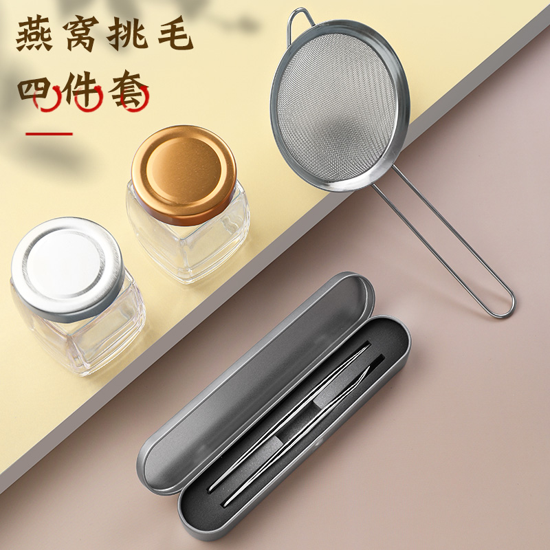 Tweezers Stainless steel bird's nest hair pick tool Three-piece artifact clip hair clip Wash filter set Sub-bottle