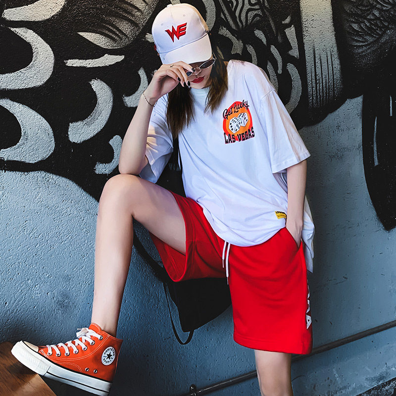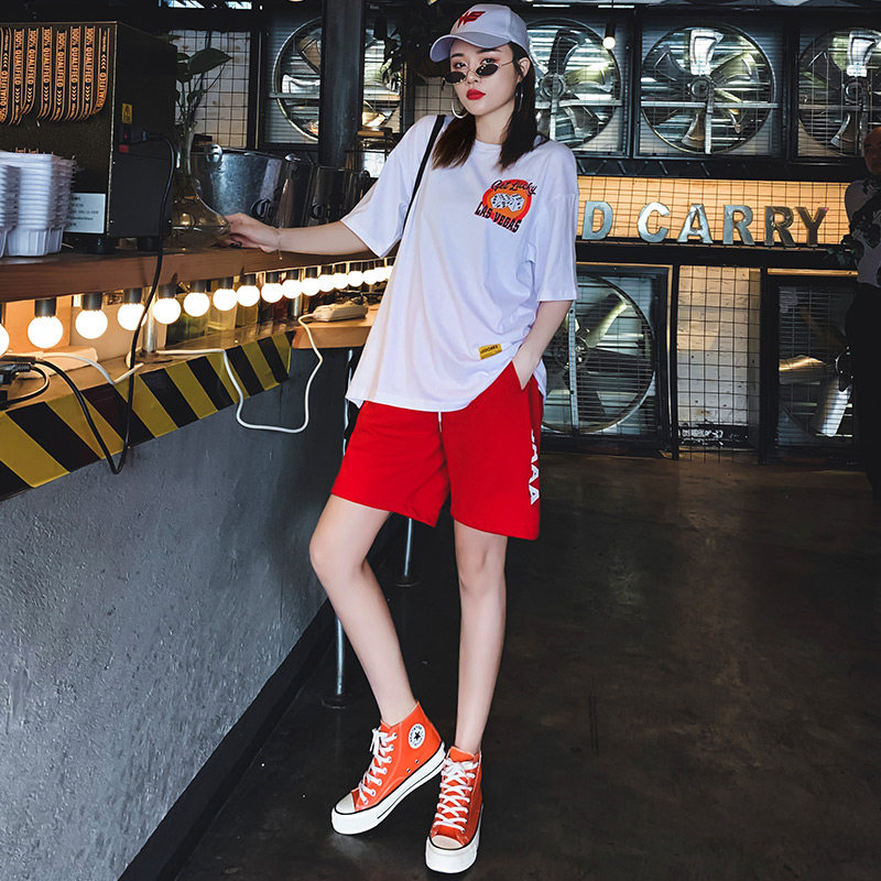 Sports casual shorts set women 2021 new spring and summer students loose Tide brand hip hop T-shirt foreign style two sets