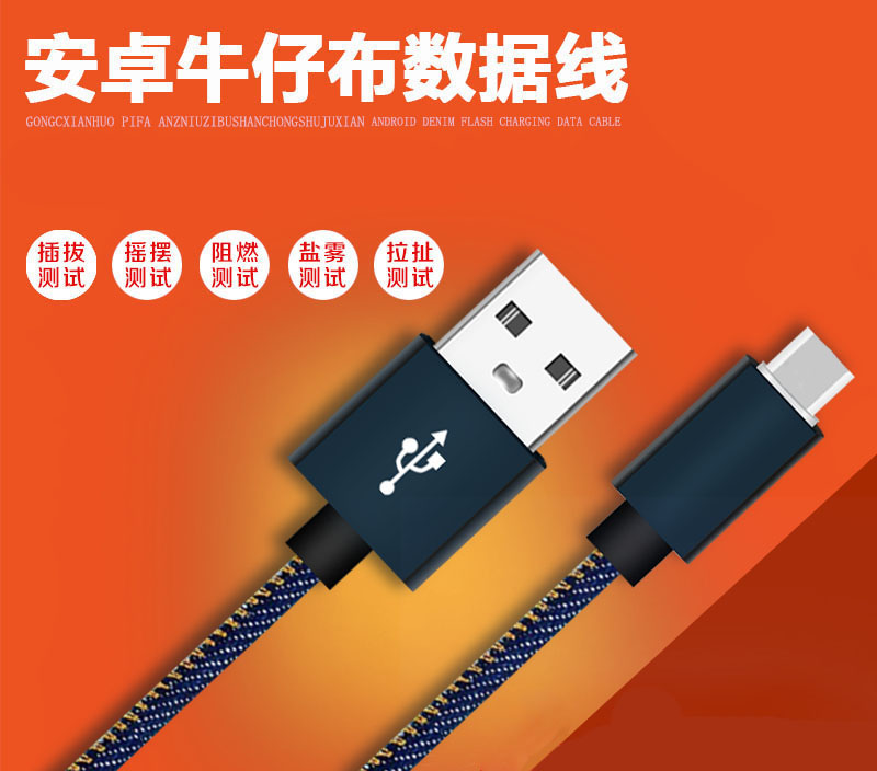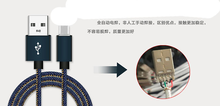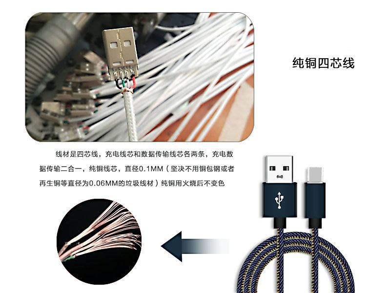 type-c data line denim phone fast charging line universal Huawei p10 glory 9 Xiaomi 6 Leview mix