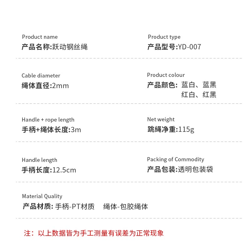 Jumping wire speed rope skipping copper bearing racing rope adult fitness speed competition skipping rope YD-007