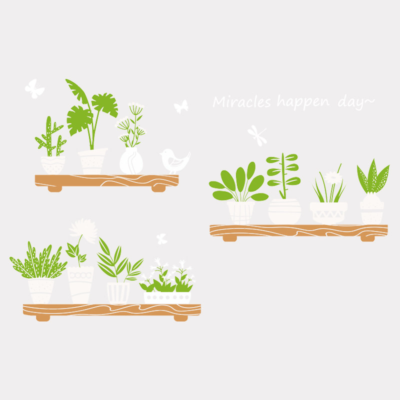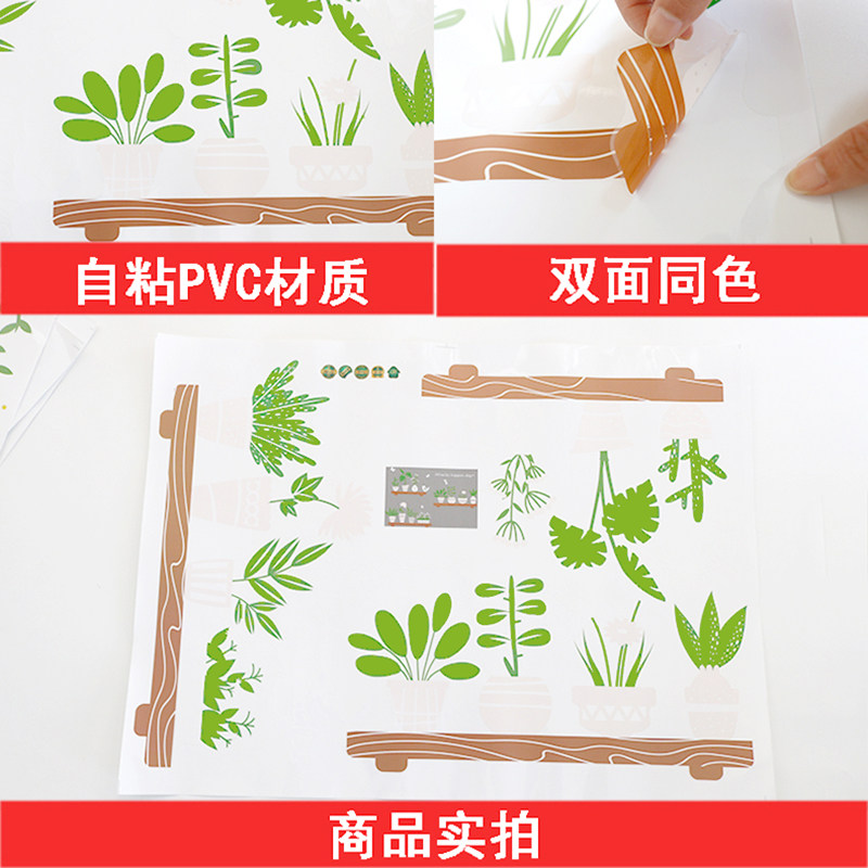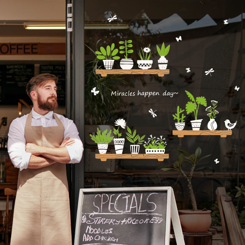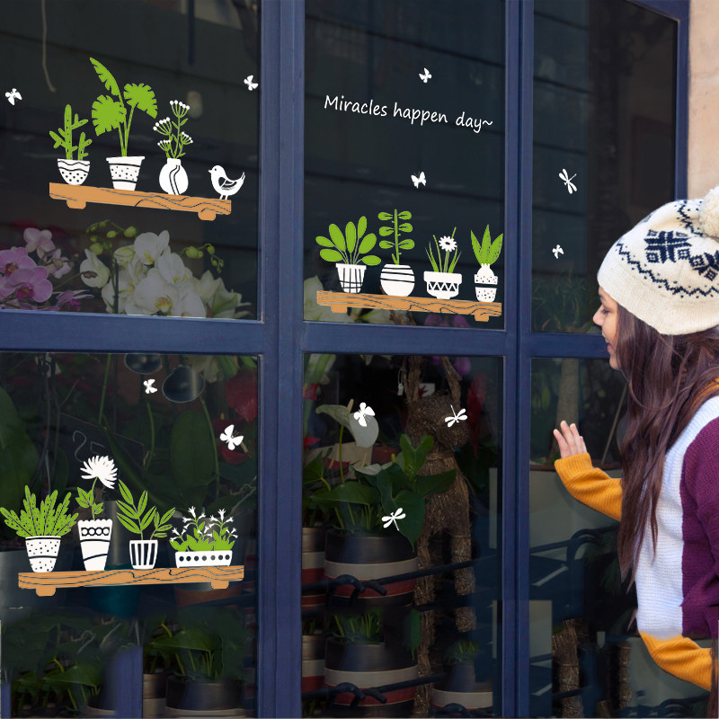 Shop Glass Door Balcony Dining Room Kitchen Moving Door Deco self-adhesive removable wall sticker Creative Green Planted Bonsai Applid