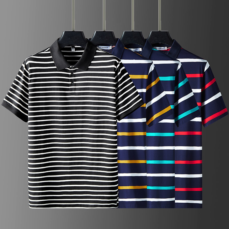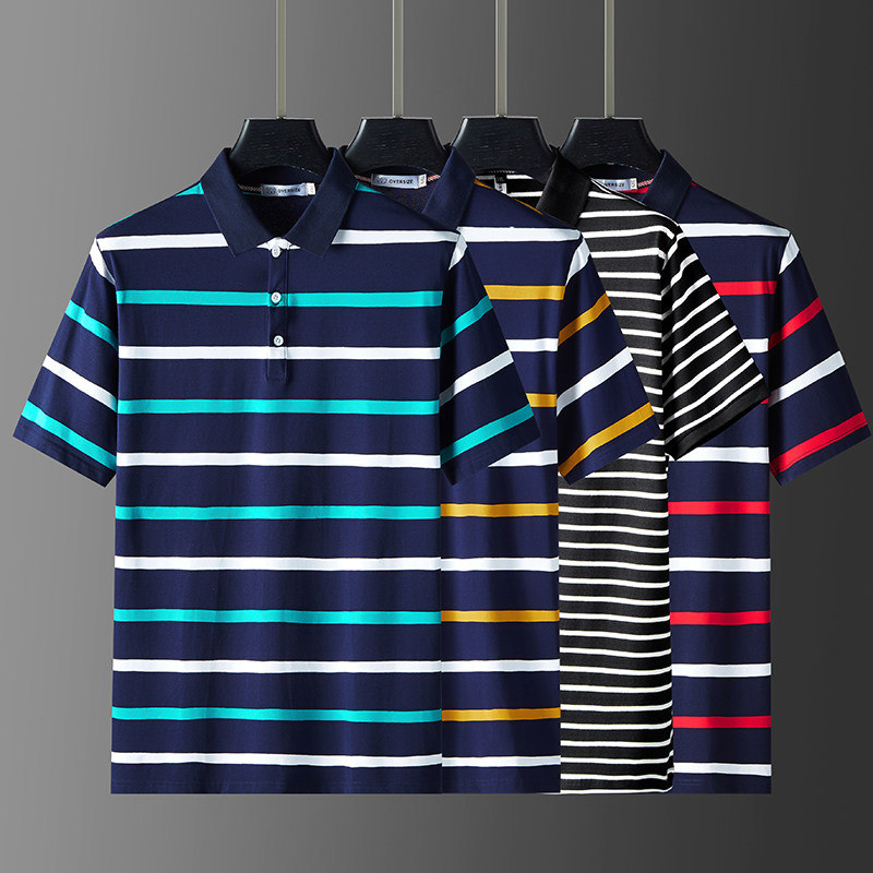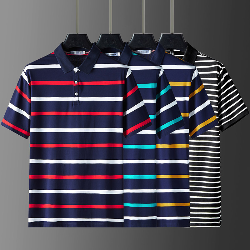Short - sleeved polo shirt men 2023 new fat man summer half - sleeved men's T - shirt men's striped Paul shirt