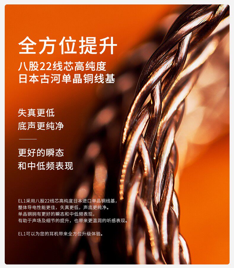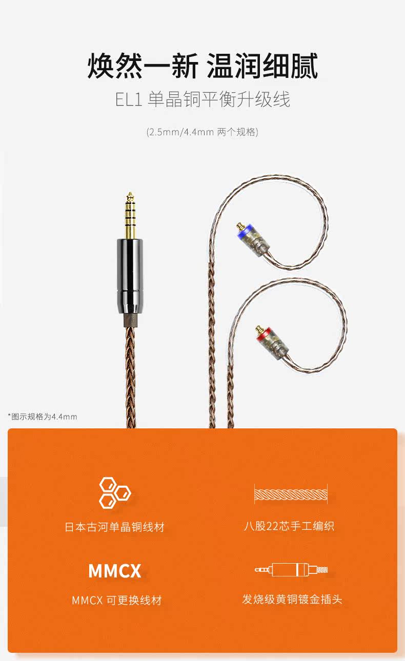 Shanling EL1 headphone upgrade line eight-stranded high-purity single crystal copper EL1-44B (2 5-4 4 balance line)