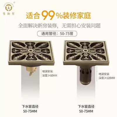 Old Coppersmith floor drain deodorant shower room floor drain All copper deodorant washing machine floor drain deodorant GD10178