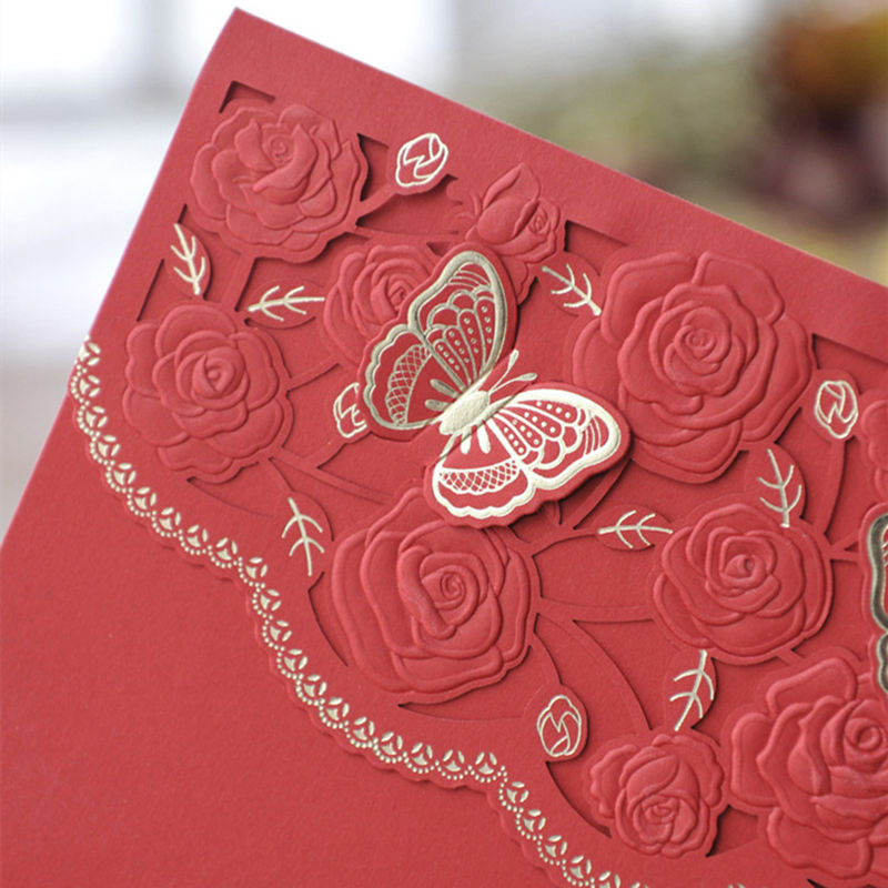 Creative Wedding personality Please post wedding Custom Chinese style Please Cambodian bronzing red invitation letter Wedding Celebration Web Red Comedy
