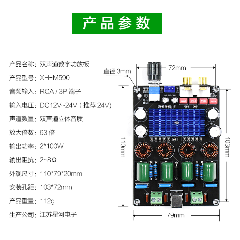 XH-M590 TPA3116D2 high power digital amplifier board HD sound quality dual channel luxury version 24V100W