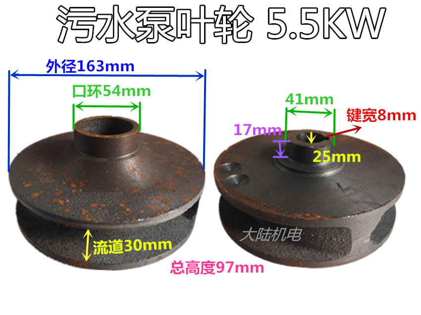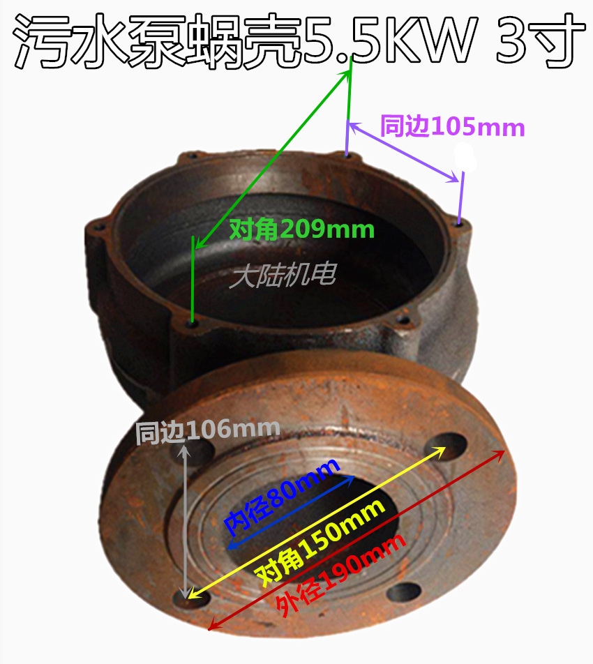 Sewage pump volute 5 5KW 3 inch bottom net maximum outer diameter 259 impeller shaft diameter 25 outer diameter 163 ring 54 Sewage pump volute 5 5KW 4 inch flange 210