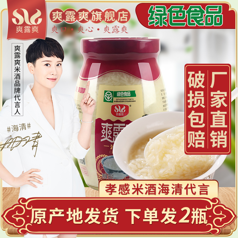 Mash lees Sweet wine Shuang Lu Shuang rice wine 900gX2 bottles Glutinous rice moon rice wine Xiaogan Rice wine Green food
