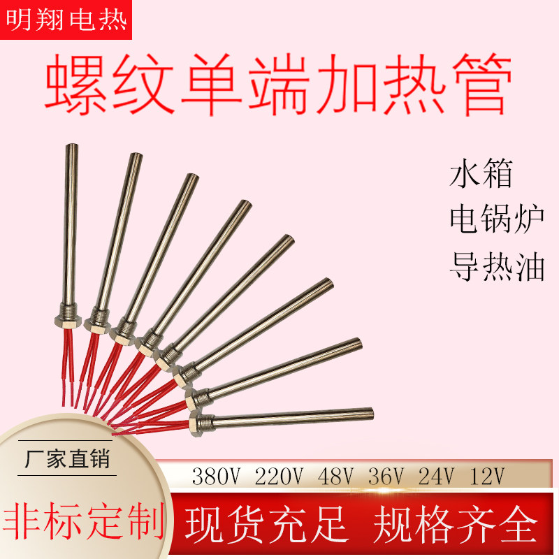 Threaded single-head heating tube radiator single-ended electric heating tube 4 minutes 6 minutes buckle 220V380V stainless steel heating rod