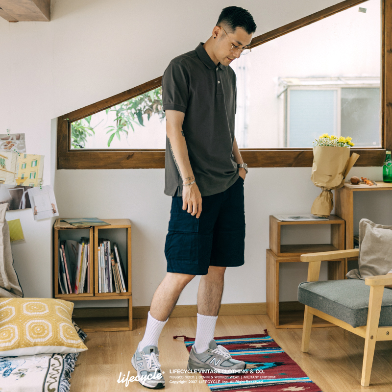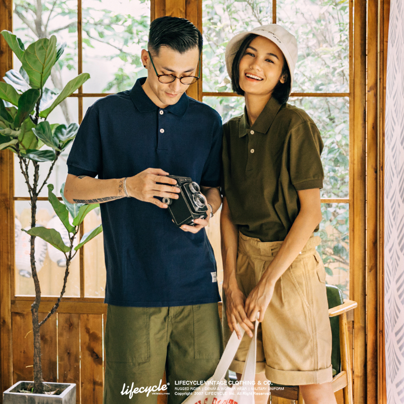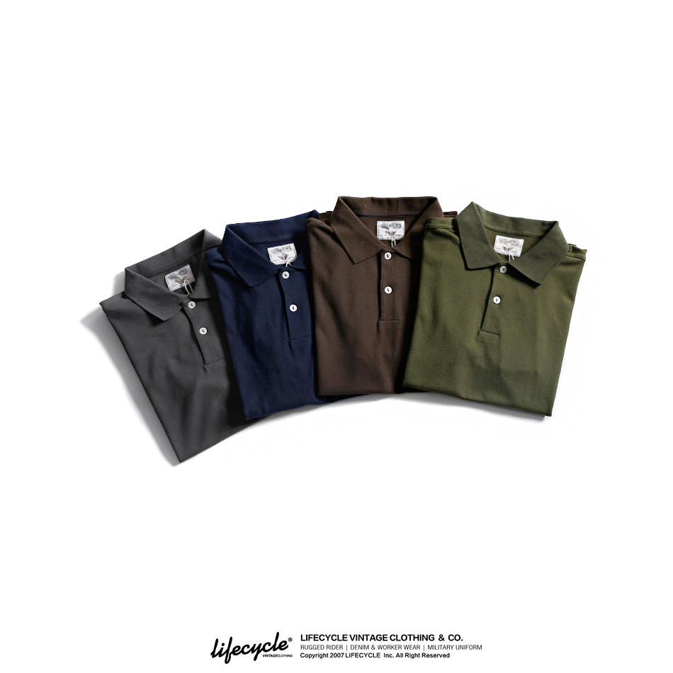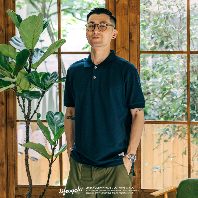 LifeCycle new Ami Kazuki light vintage wash solid color lapel polo shirt men's army green short sleeve t-shirt