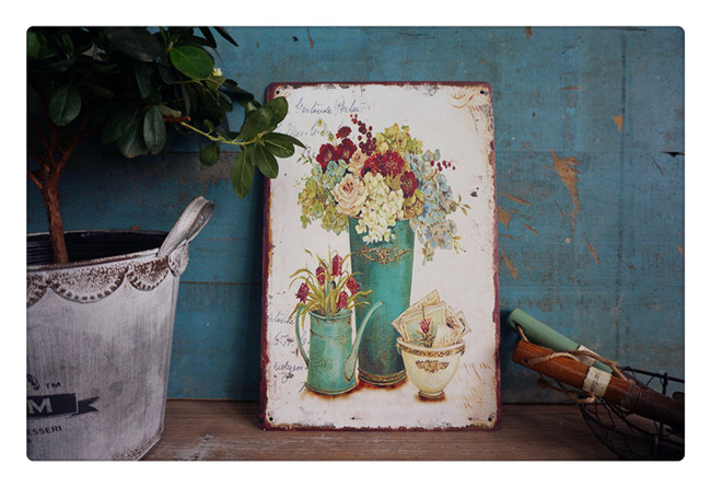 4 FOREIGN TRADE GARDEN HOME GROCERIES IRON SHEET FOR OLD DECORATION PAINTING AMERICAN COUNTRYSIDE GARDEN PRINTS