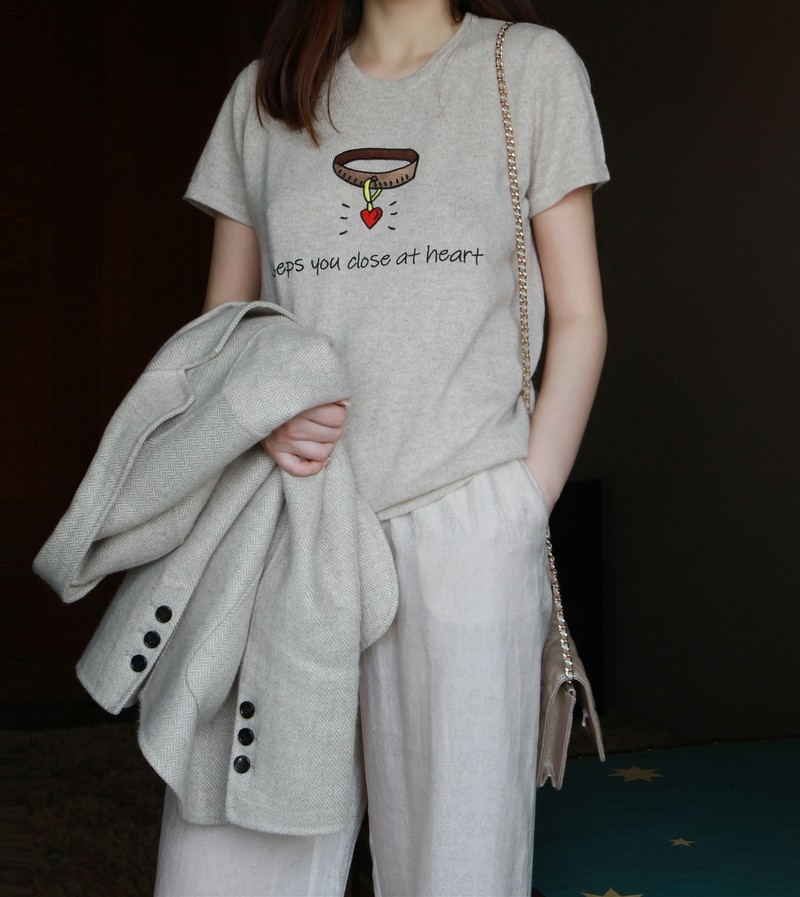 You are the most precious Xodgz special shop owner loves pure cashmere ruby embroidered T-shirt women's summer short-sleeved