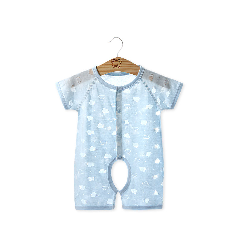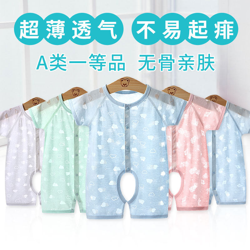 Baby jumpsuit summer clothes Newborn clothes Male baby cool harem open short-sleeved ultra-thin air-conditioning clothes