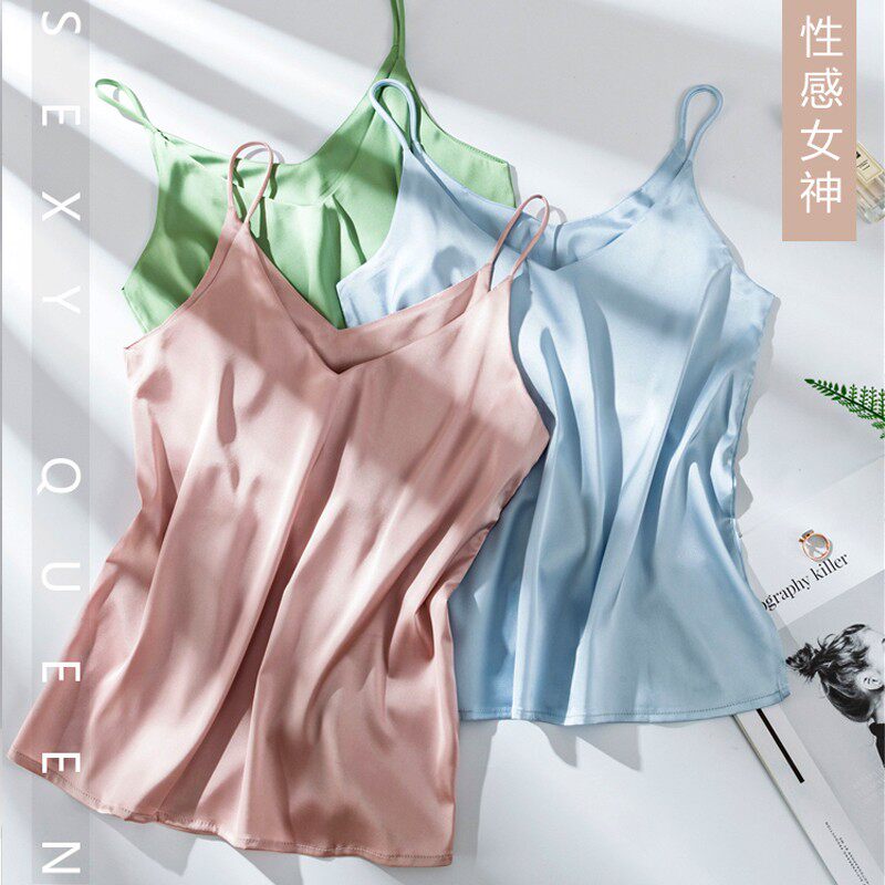 OL temperament V-neck camisole women's outerwear professional white-collar suit bottoming shirt silk and satin with large size top