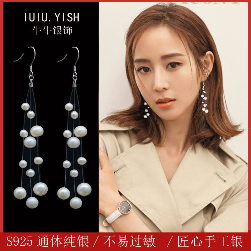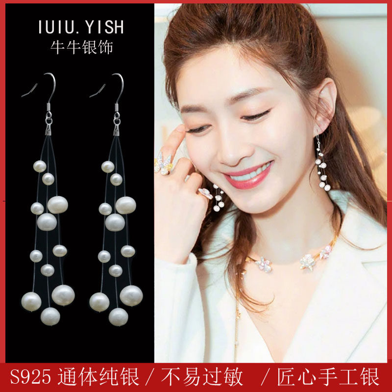 Pearl earrings women's earrings 2022 new trendy internet red sterling silver slim internet red fashion earrings women's long temperament super