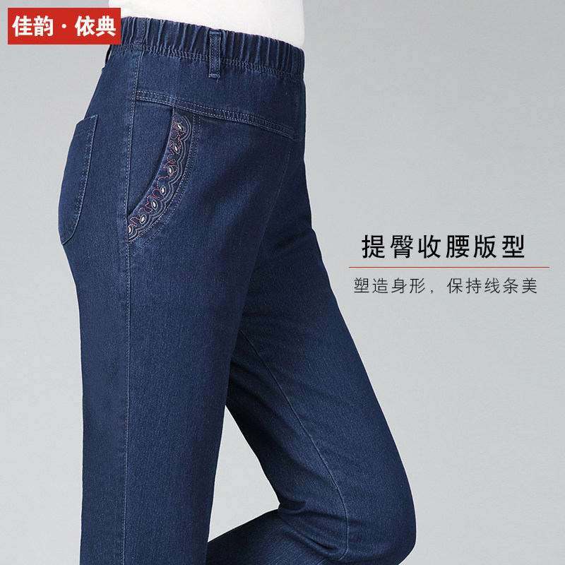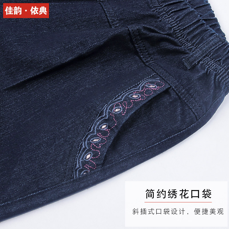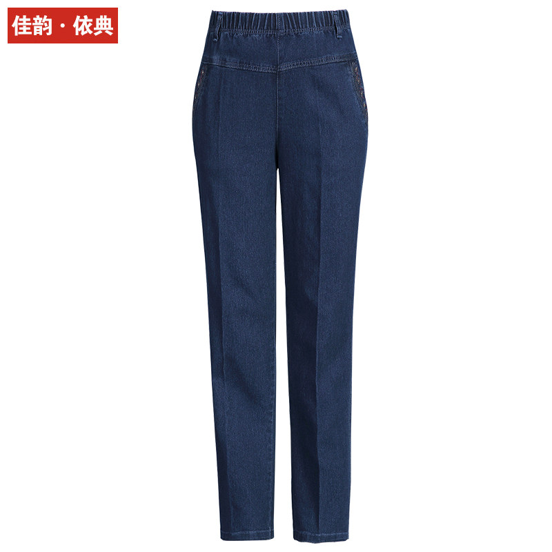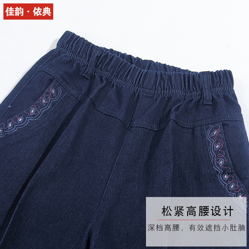 Middle-aged denim trousers women's spring and autumn high waist loose straight elastic waist spring mother pants middle-aged women's pants