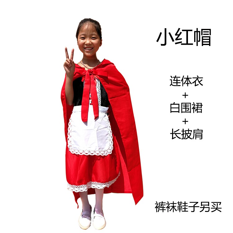 Big tree costume (brown non-woven) Little Red Riding Hood 3-piece set (cloak clothes apron) big wolf costume grandma costume (top pants) green big tree long version (gold velvet) hunter