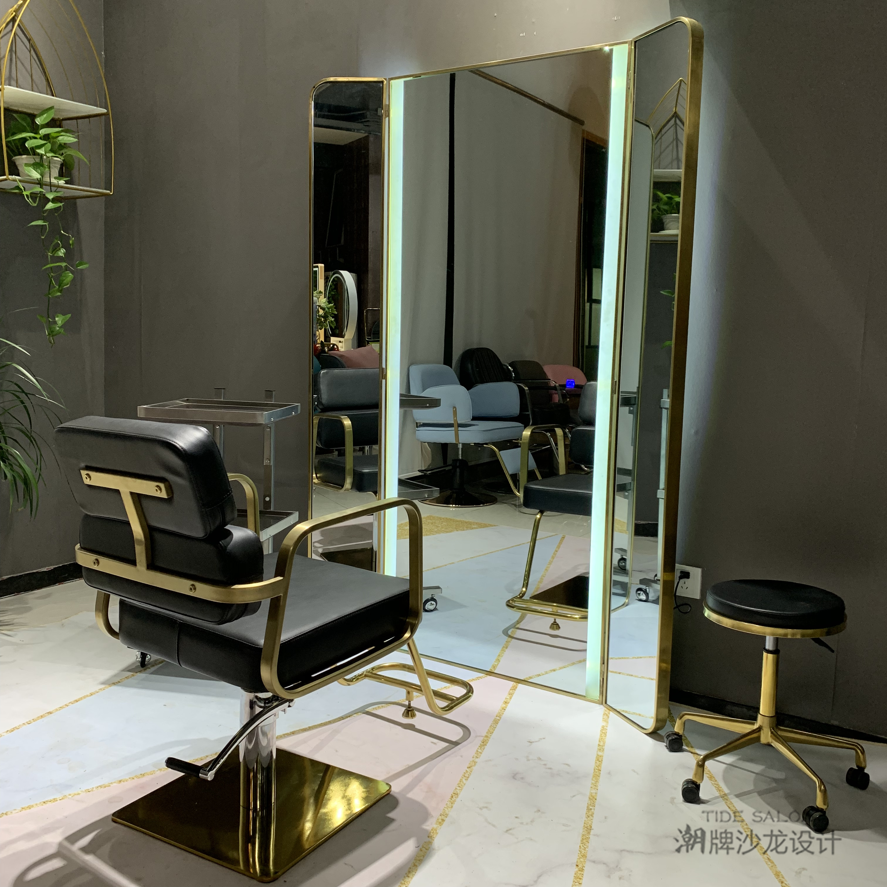 The new hair salon mirror table 3AM with the same high-grade floor-to-ceiling mirror hair salon mirror tide with LED lights for hair salons