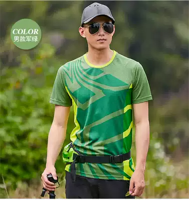 Outdoor quick-drying T-shirt men's short sleeve round neck print elastic quick-drying sports light and breathable sweat-absorbing quick-drying large size