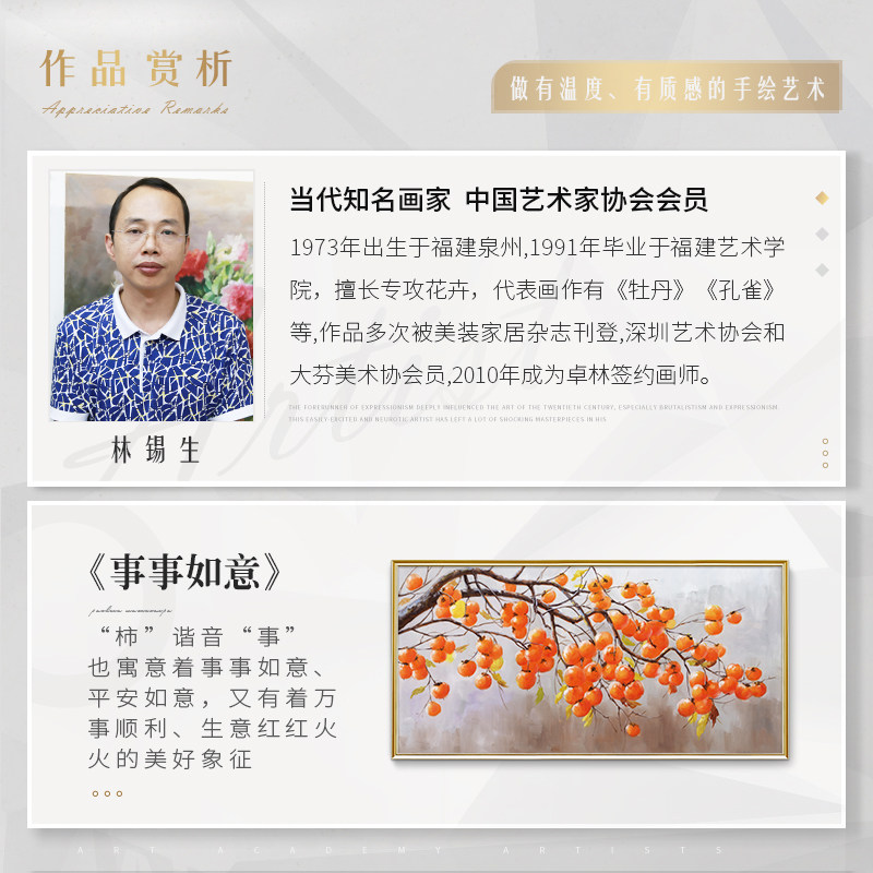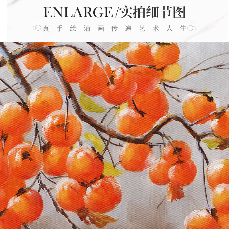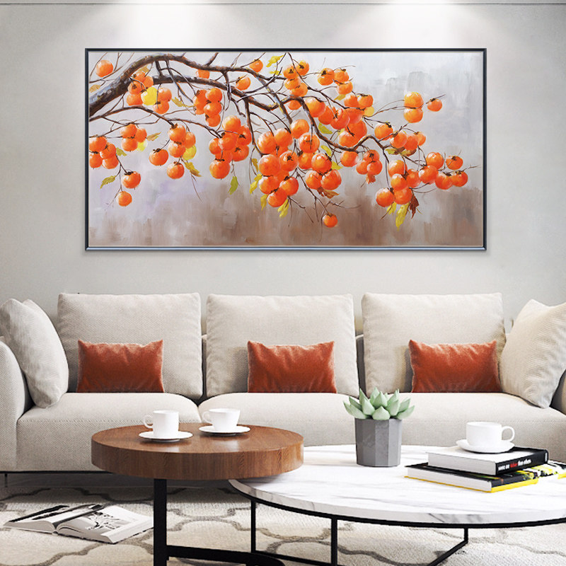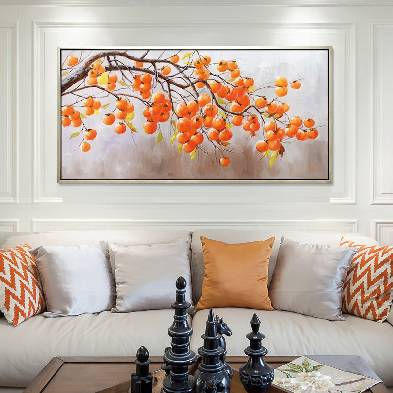 New Chinese living room hanging painting sofa background wall hand-painted oil painting matter Persimmon Decorate Painting Dining Hall Mural Painting