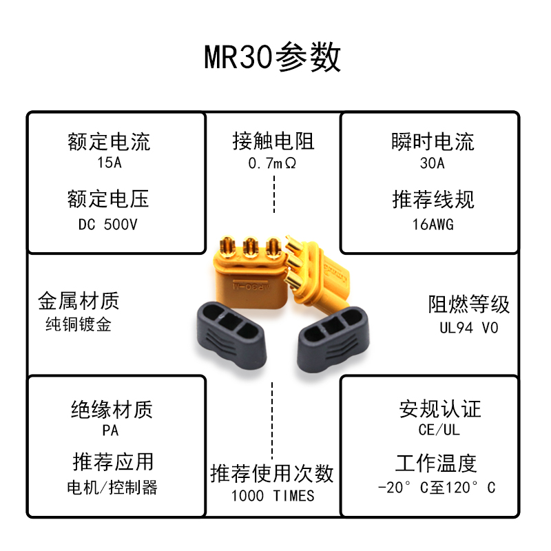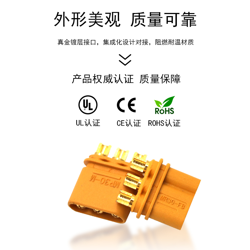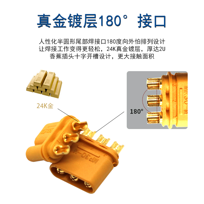 MR30 male and female head aircraft model electronic governor plug-in accessories yellow lithium battery transfer interface gold-plated banana plug connector