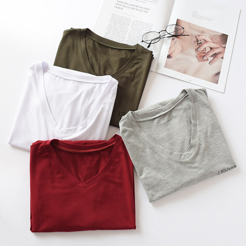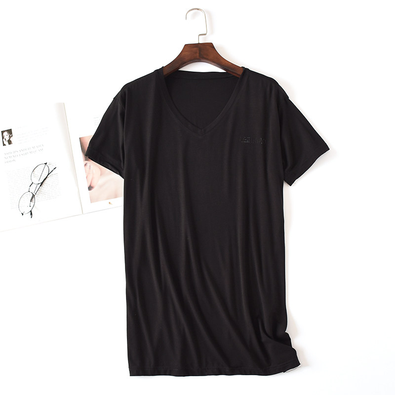 Boutique men's Modale T-shirt slim loot casual short sleeve youth V collar pure color can't afford to play undershirt T-shirt