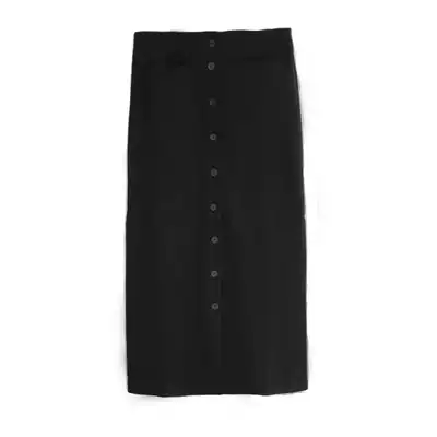 (Produced by Xiaolajia) single-breasted front button knitted medium-length thick black elastic skirt