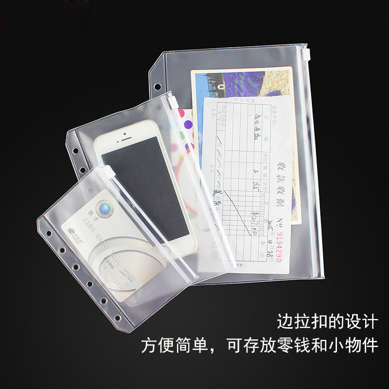 PVC transparent bag A6 File bag containing information sheet Cardsheet Name Sheet sheet Loose-leaf Bag A7 Information Pull Side Bag Waterproof Pull Chain Bag Note Zero Money Cashier Bag A5 Office Supplies 6 Holes