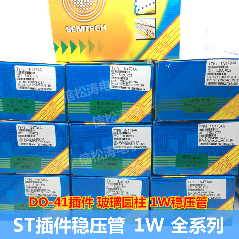 ST's new 1N4733A 1W 5.1V regulatory secondary tube DO-41 plug-in bulk strip glass tube