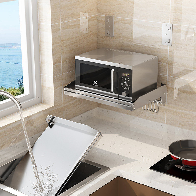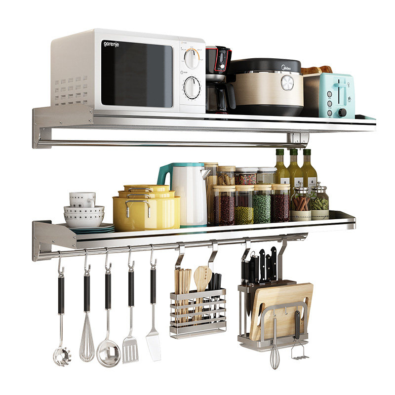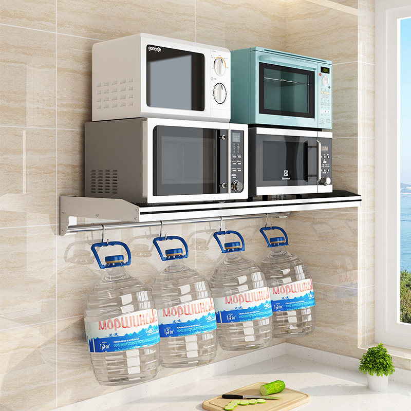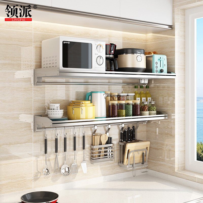 Punch-free 304 stainless steel kitchen shelf wall-mounted microwave oven pots and pans seasoning bottle storage rack