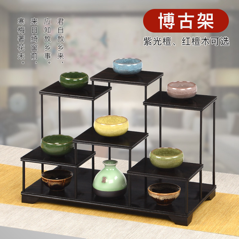 Purple sandalwood small bogu rack teapot tea set shelf display rack ornament rack shelf solid wood Chinese style Duobaoge