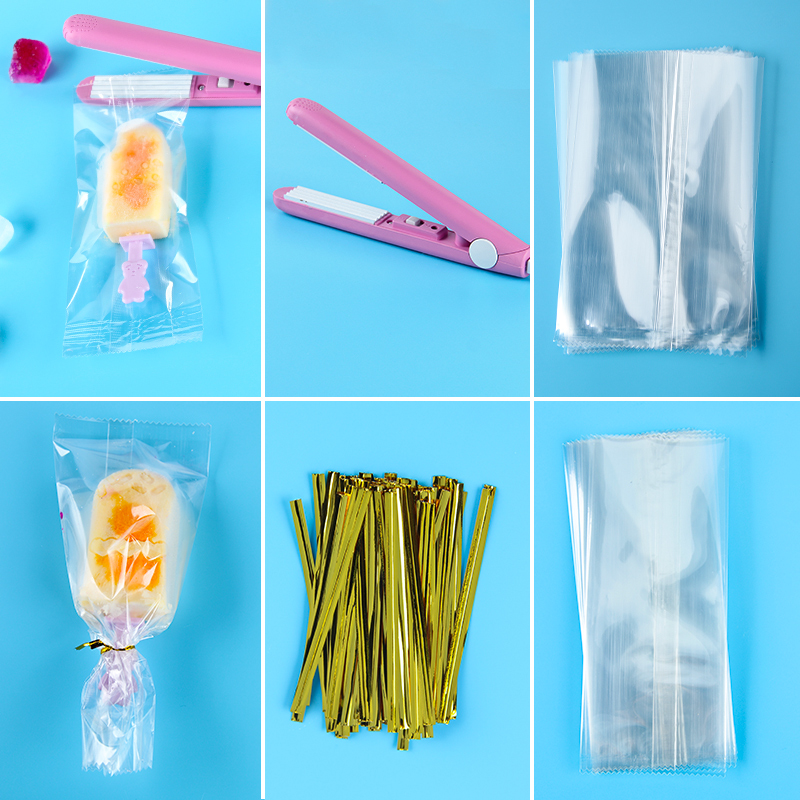 Medium ice cream transparent bag (100pcs) Large ice cream transparent bag (100pcs) Gold wire cable tie(760pcs) Rose red sealing machine ice cream stick (50pcs)